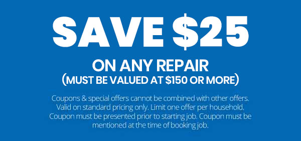 Coupons & special offers cannot be combined with other offers. Valid on standard pricing only. Limit one offer per household. Coupon must be presented prior to starting job. Coupon must be mentioned at the time of booking job.